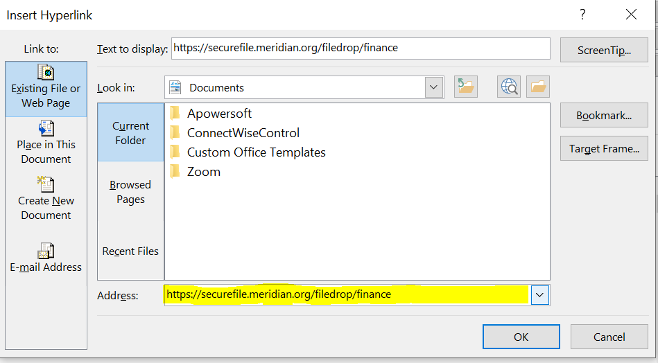 Before starting, make sure you have copied the URL for the FileDrop. For Finance, it can be accessed here: https://securefile.meridian.org/filedrop/Finance