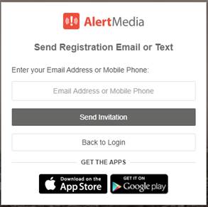 - To activate your AlertMedia mobile app, you will need to register at https://dashboard.alertmedia.com/#/login/register/ .